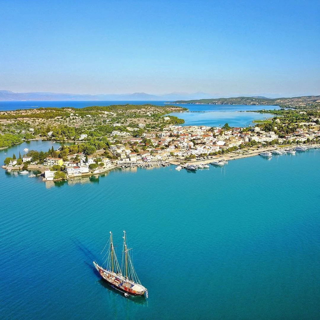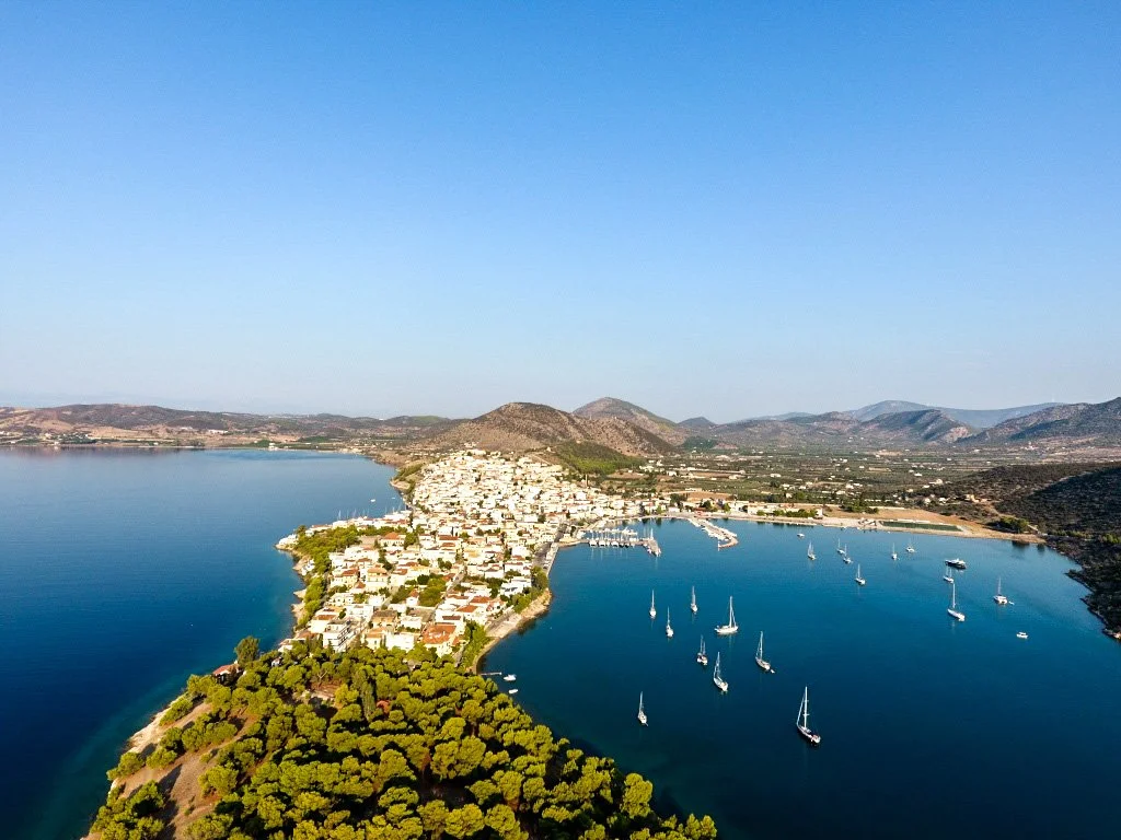 Built on a pine-clad promontory, the seaside town of Ermioni, strongly reminiscent of an island, stands out for its idyllic shores, the picturesque harbor with its famous fish taverns and its lively nightlife. It is located in the NE of the Peloponnese at a close distance from Athens either by road or by flying dolphins from the port of Piraeus.